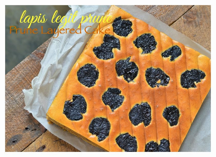 Keluarkan loyang dari oven, letakkan 1 sendok sayur adonan, ratakan dan panggang, lakukan sampai mendapat dua lapis, lapisan ketiga susun prun 4 x 4, kali ini sedikit ke tengah diletakkan kira-kira antara susunan prune dilapisan bawah (lihat gambar). Lakukan proses ini sampai adonan habis dengan posisi prune berselingan, ini supaya kelihatan bagus sewaktu dipotong dan dihidangkan.